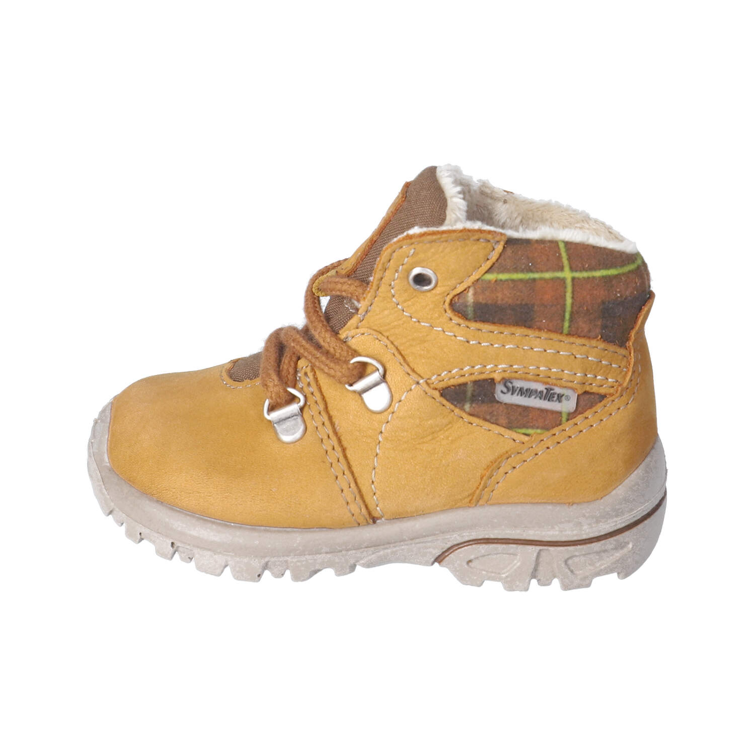Schnürstiefel sollten gut sitzen, aber auch genug Platz bieten, damit die Füße Deines Kindes sich bewegen können. Zwischen den Zehen und der Schuhspitze sollte etwa eine Daumenbreite Platz sein. Probiere die Stiefel am besten mit dicken Socken an, besonders im Winter.